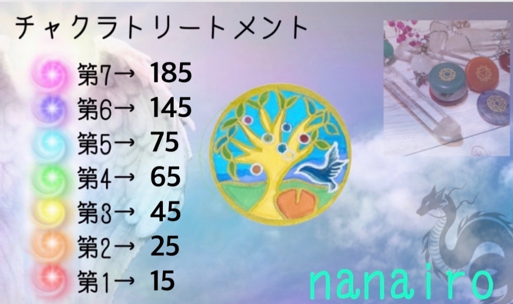 “nanairo(ナナイロ)”は、チャクラや龍のエネルギーでみなさまが素敵な毎日を過ごせるようサポートするサロンです。